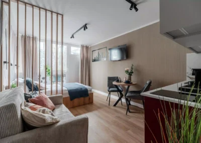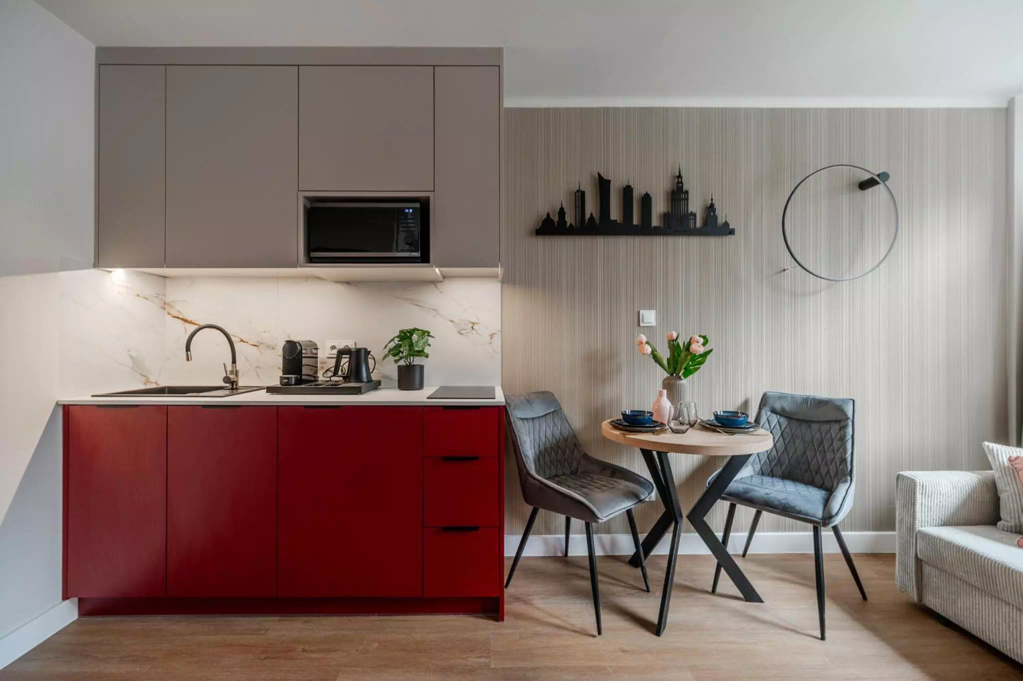 aneks kuchenny, czajnik elektryczny, lodówka, ekspress do kawy